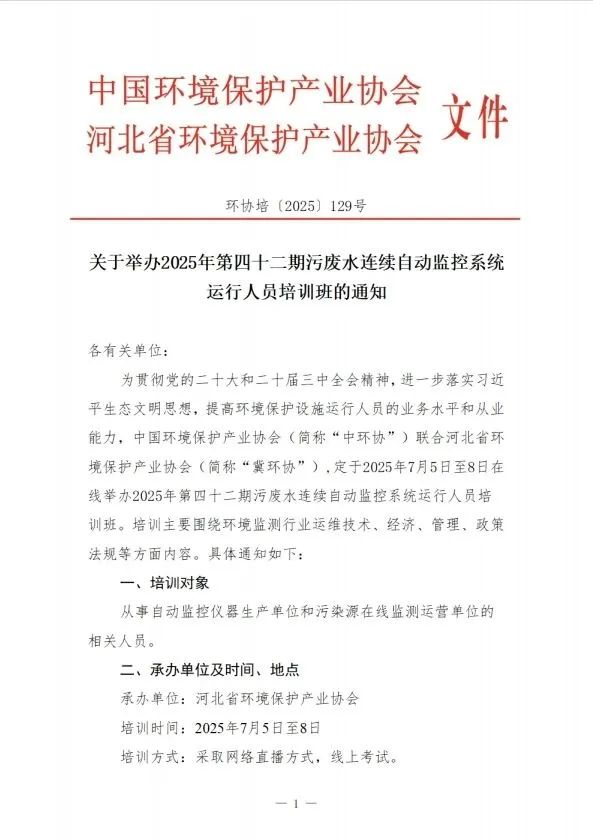 - 2025-06-12關(guān)于舉辦2025年第四十二期污廢水連續(xù)自動(dòng)監(jiān)控系統(tǒng)運(yùn)行人員培訓(xùn)班的通知